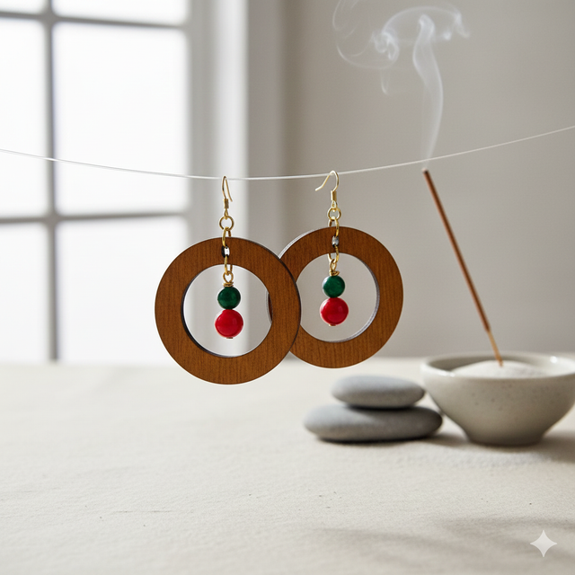 Boucles d’oreilles en bois assorties de perles en pierres Naturels 🪵+💎