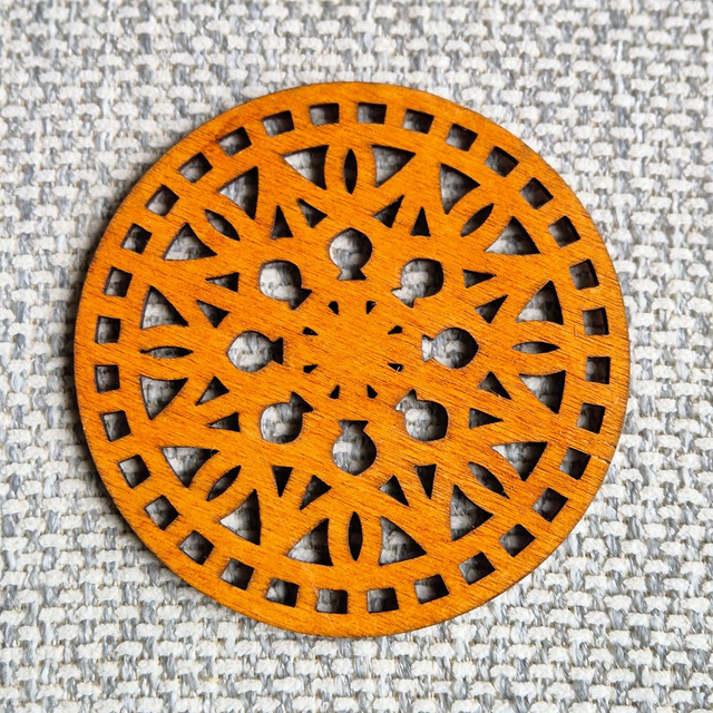 6 Dessous de verre, découpé au laser dans du peuplier, traité contre l'humidité et vernis