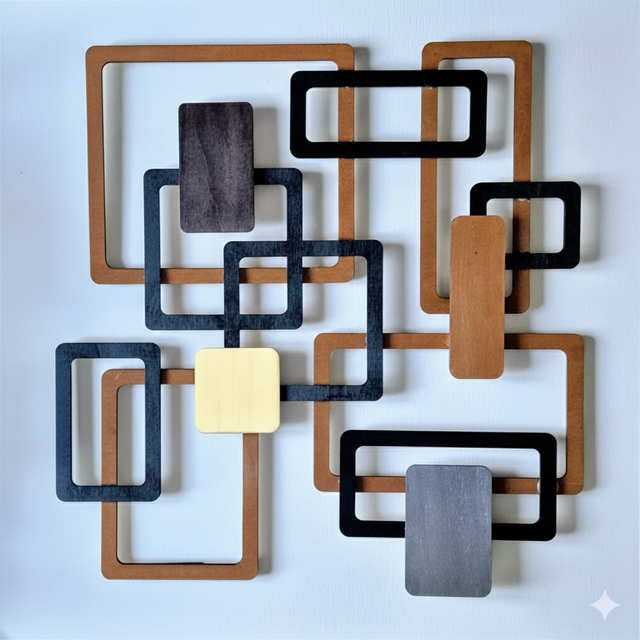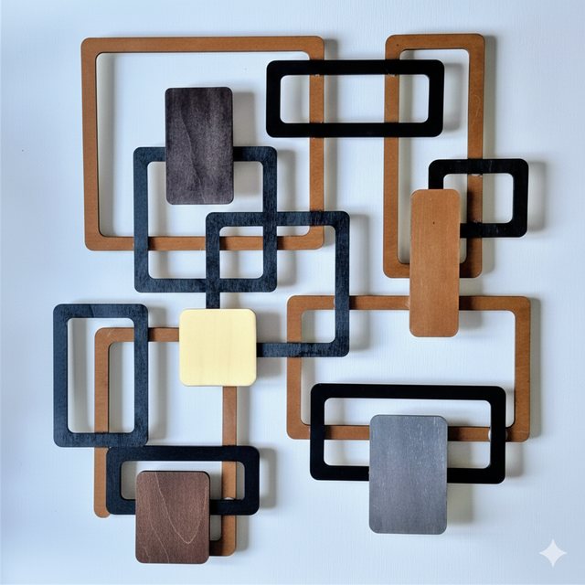 sculpture murale en bois découpée au laser ,au design géométrique unique.